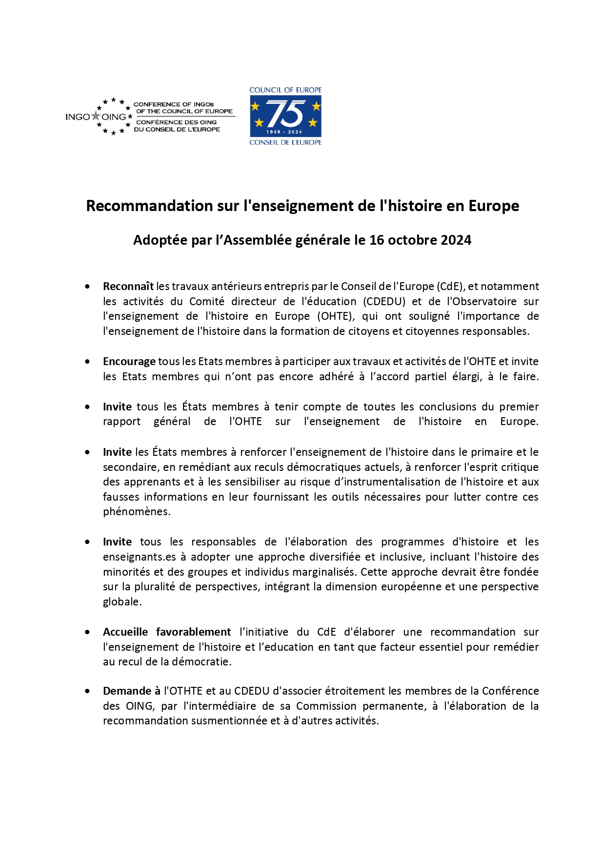 Commission Education et Culture de la Conférence des OINg du Conseil de l’Europe